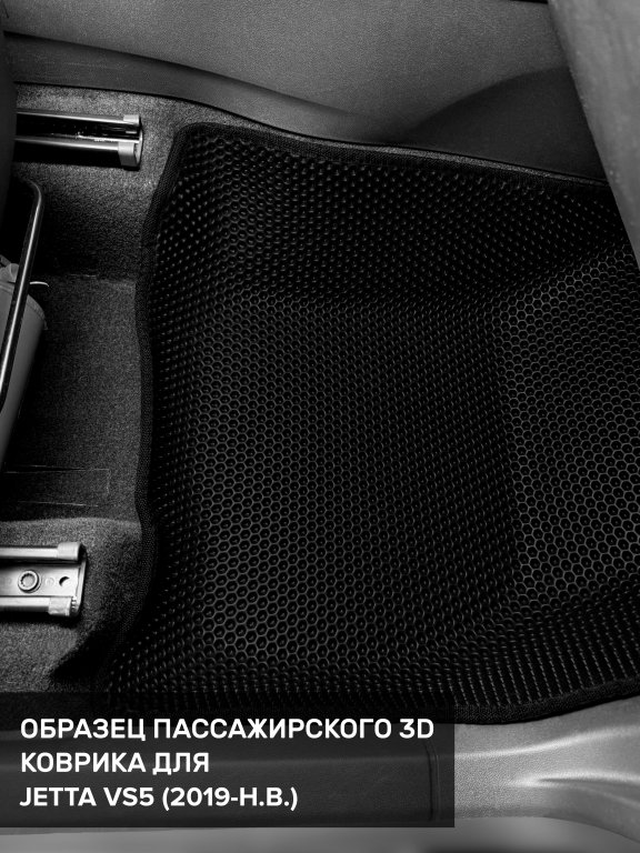 Автомобильные 3д коврики для Jetta VS5 (2019-н.в) в салон авто и багажник сделаны из инновационного полимерного материала EVA, изысканная структура в виде ячеек не дает воде, пыли и снегу разлетаться по салону машины и багажнику. 3д коврики зафиксированы на полу определенными клипсами, соответствующими Jetta VS5 (2019-н.в), и не двигаются в процессе езды.
